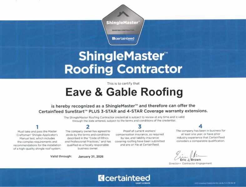 Choose Eave & Gable Roofing for your next roof repair or roof installation job.